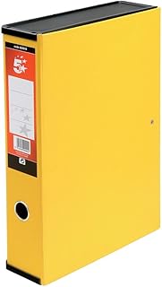 5 Star Box File Lock Spring with Ring Pull and Catch 75mm Spine Foolscap Yellow [Pack of 5]