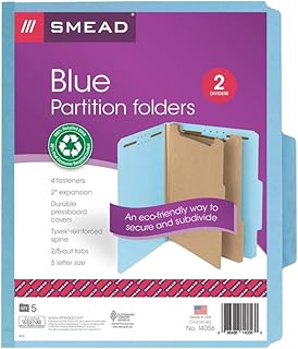 Smead 100% Recycled Pressboard Classification Folder, 2 Dividers, 2 Expansion, Letter Size, Blue, 5 per Pack (14056) by Smead