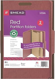 Smead 100% Recycled Pressboard Classification Folder, 2 Divider, 2 Expansion, Legal, Red, 5 per pack (19046)
