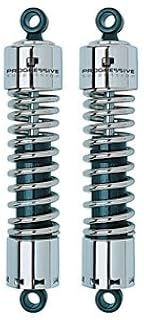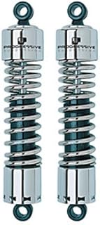 Details All Steel double wall damper with multistage velocity sensitive damping 5-position cam style preload adjuster High Pressure Gas Charged for consistant damping performance Standard or Heavy-Duty progressive rate springs in either chrome or black Optional full Show Chrome covers on select applications 1 Year Warranty Progressive Suspension 412 Series 11.5in. Shocks - Black 412-4063B Brand: Progressive Suspension 1 rating Price: See price in cart About this item Manufactured from the finest materials available The 412s simple, durable design makes them a cost effective improvement to your motorcycles suspension performance