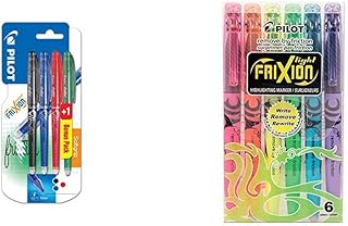 Pilot - Pochette de 6 FriXion Light - Surligneur - Jaune/Rose/Vert/Bleu/Orange/Violet - Pointe moyenne & Frixion point Blister de 3 Rollers encres gels Thermosensible + 1 Gratuit Pointe fine Assortis