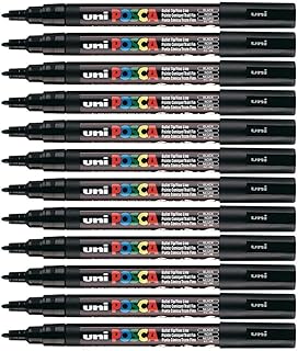 Uni-Ball Réf 9002000 Posca PC3M Marqueur Pointe fine Trait 0,9 à 1,3 mm Noir Lot de 12 (Import Royaume Uni)