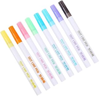 Ambility 8 Pcs Double Line Contour Pen Color Marker Pen Student Marker Stationery Set Outline Pen Double Line Pen Writing Drawing Pens