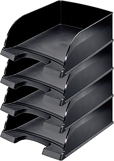 Leitz 52330095 Lot de 4 Corbeilles à courrier Hauteur 103 mm Noir