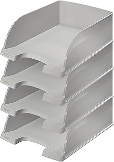 Leitz 52330085 Lot de 4 Corbeilles à courrier Hauteur 103 mm Gris