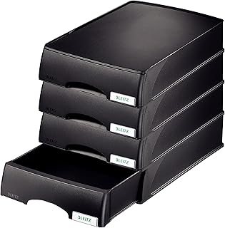 Leitz 52100095 Lot de 4 Corbeilles à courrier à tiroir Hauteur 70 mm Noir