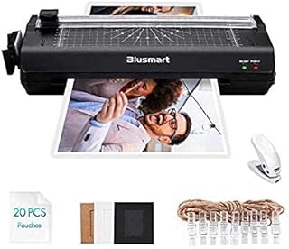 Blusmart A3 Plastifieuse,6 in 1 Plastifier à Chaud ou à Froid, équipé d'un coupe papier, découpe coin, perforatrice à un trou avec 25 sacs de plastification