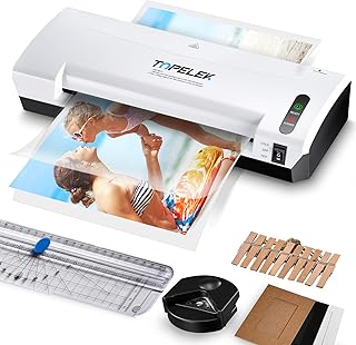 TOPELEK Plastifieuse A4, Machine à Plastifier Thermique avec 3 Min de Préchauffage /10 Pochettes de Plastification A4, Largeur Max 230 mm (A4) pour Photo/Carte/Menu/Maison/Ecole/Bureau