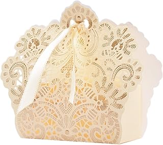 BUONDAC 50pcs Boîte à Dragées Bonbon Ciselé Bonbonnière Faveur Chocolat Cadeau Invités Accessoire Mariage Baptême Fête Anniversaire Noël Party Blanc Champagne