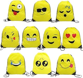 Tangger Emoji Sac De Cordon, 10pcs Sports Portable Enfants Emoji Cordonnet Sacs à Dos Décorations Cadeau de Fête Noël Party,Anniversaire,Cadeau de Soirée