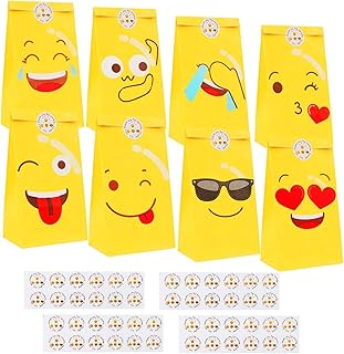 Herefun Sac Cadeau, 48Pcs Emoji Sac Cadeau Papier + 48Pcs Autocollant, Sac Cadeau Anniversaire Enfant, Petit Kit Cadeau Utilisé dans de Bonbons, Noix, Chocolats, Party, Anniversaire