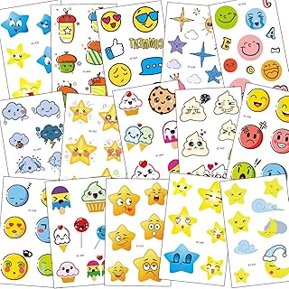 SZSMART Tatouage Temporaire Smiley Femme Homme Enfant Emoji Tattoos Tatouages ephémères Emoji Autocollant Cadeau Anniversaire fête Noël