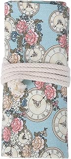 Toile Crayon Rouleau, 48 Trous Roll up Étui À Crayons Rose Horloge Motif Crayons De Couleur Pochette De Rangement pour Adultes Coloriage Enfants Dessin Dessin Cadeau