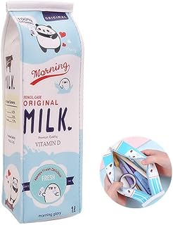 Oyfel Trousse Scolaire Pochette Monnaie Plumier Cartoon Boîte à Lait pour Crayons Stylo Sacs à Cosmétiques Maquillage Papeterie Vintage Écoles Voyage Stockage 1 Pcs