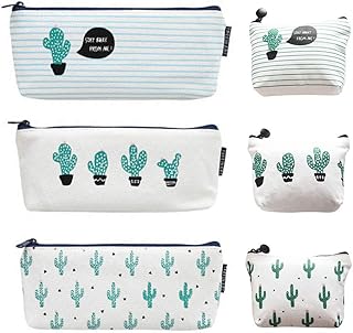 Chingde Ensemble de Sacs à cosmétiques en Toile, 6 pièces Étui à Crayons Cactus Étui à Stylo à glissière Pochette Porte-Monnaie pour étudiants, Femmes, Trousse de Maquillage de Voyage