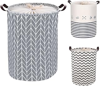 Panier à Linge Pliable en Toile avec poignées en Cuir PU et Cordon de Serrage pour Ranger des vêtements Sales, des Jouets ou du Linge de Chambre à Coucher 45 cm
