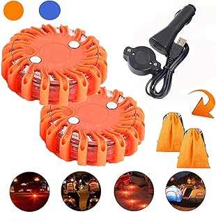 Mioke 2pcs Gyrophare LED magnetique Balise de Signalisation Lumière d'urgence d'avertissement 12v 24v Clignotant Rechargeable KIT (orange)