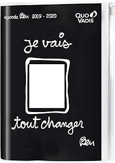 Quo Vadis - 1 Agenda Scolaire Journalier Sept 2019 à Août 2020 - Ben 2 Visuels Aléatoires - 12 x 17 cm - Personnalisable Ouverture Zip