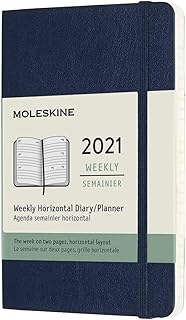 Moleskine Agenda Semainier 2021, Agenda Planner Hebdomadaire 12 Mois avec Mise en Page Horizontale, Agenda de Poche avec Couverture Souple 9 x 14 cm, Bleu Saphir, 144 Pages