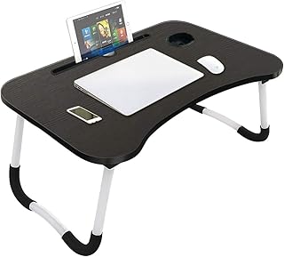 Table de lit pour ordinateur portable, petit-déjeuner, support pour ordinateur portable, table de lecture, plateau portable stable avec fente pour tasse, table multifonction (60 x 40 cm)