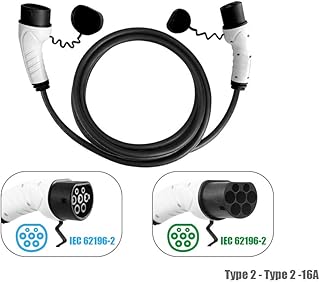 K.H.O.N.S. EV Cable Type 2 32A/16A pour Station de Charge Europe EV Charger Type 2 a Type 2 Monophase 7.2 KW Convient Renault Zoe, Leaf, Kona, (5M)