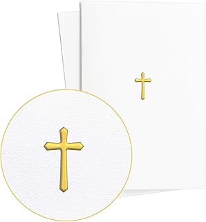 Lot de 2 cartes de condoléances avec enveloppes simples | Carte de condoléances chrétienne individuelle avec croix en relief feuille d'or, haute qualité, noble, stylé, E25